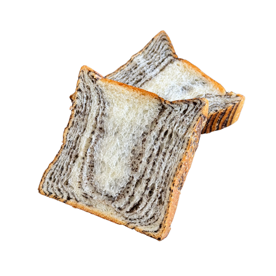 绵软吐司揉入可可流纹,苦甜交融,层次分明。