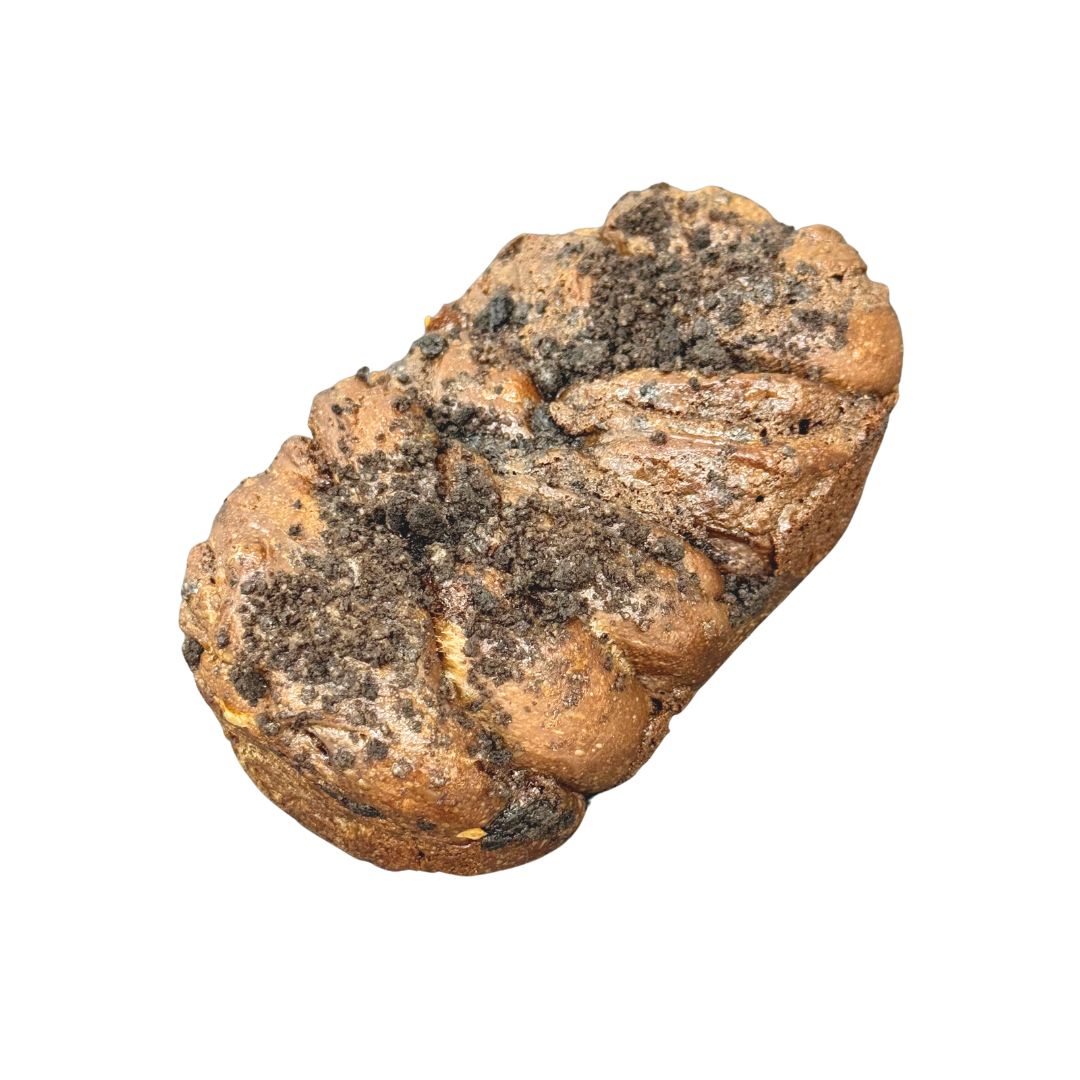 Cocoa bread with a molten heart — filled with silky chocolate custard, crushed Oreo cookies, and our housemade chocolate milk crumble.